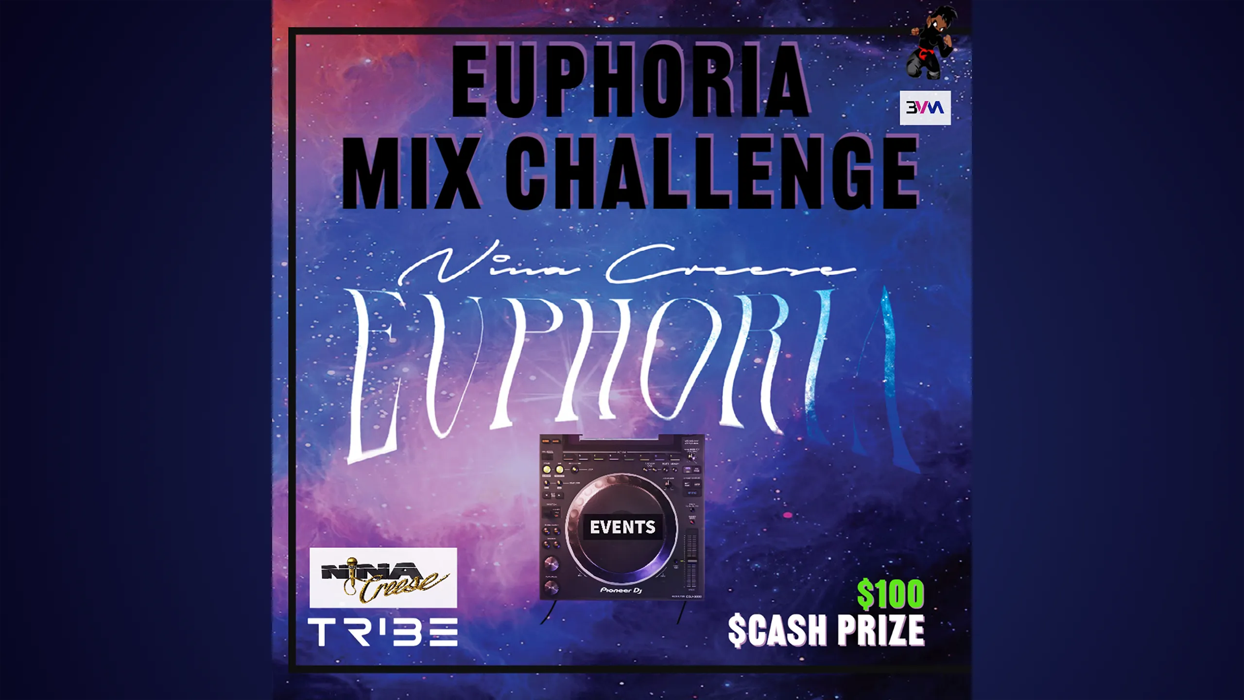 Best DJ Mix Wins $100! Are you up for the challenge? All DJs of all levels are welcome! Each DJ can play one mix up to 5 minutes featuring the track "Euphoria" by Nina Creese