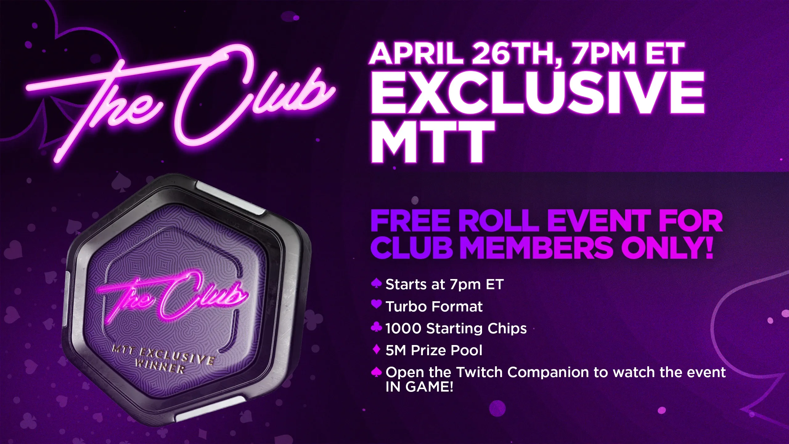 The next Club-exclusive multi-table tournament in PokerStars VR is right around the corner, and the pot is overflowing with a whopping 5,000,000 chip prize pool!