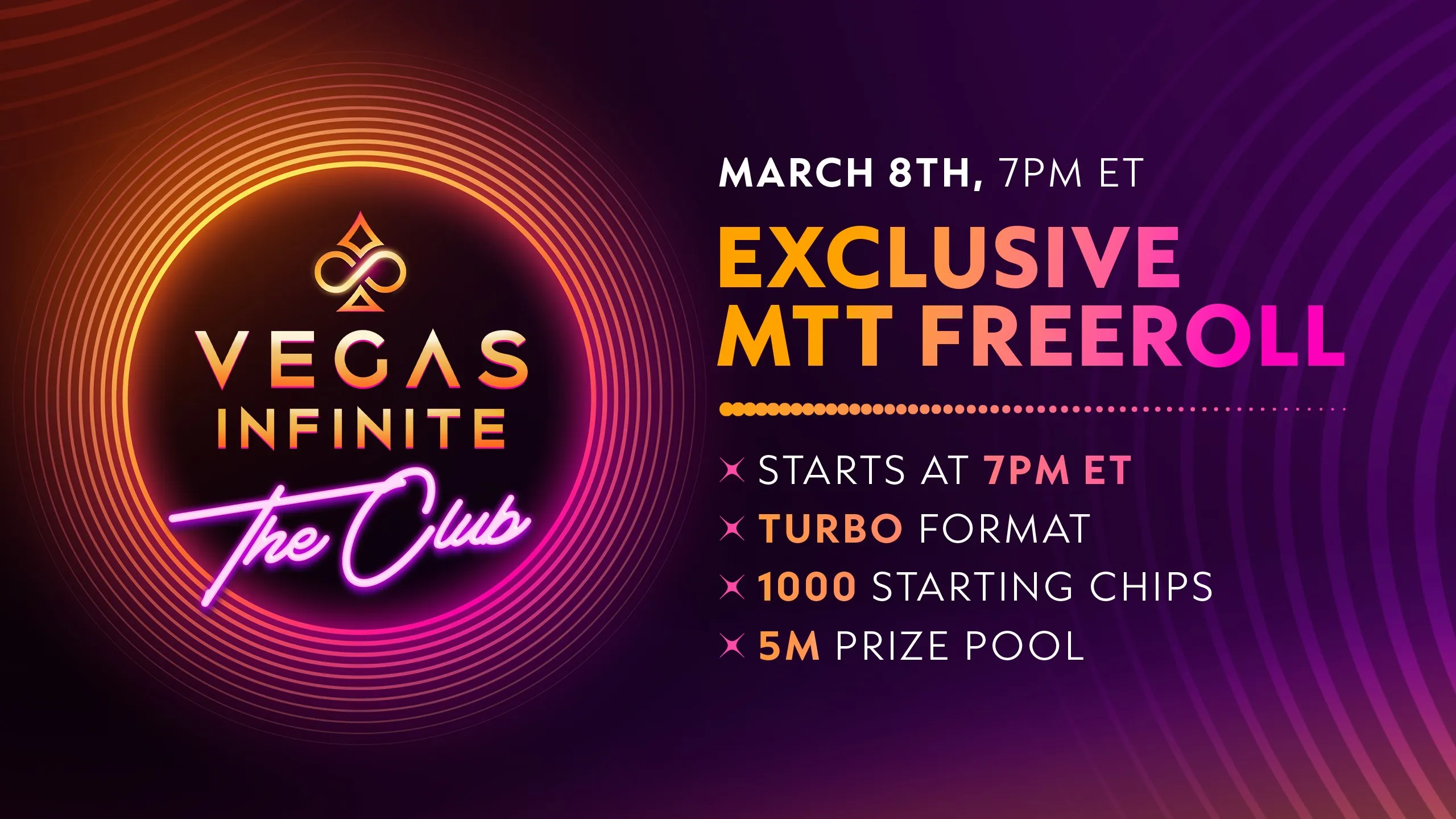 The next Club-exclusive multi-table tournament in Vegas Infinite is right around the corner, and the pot is overflowing with a whopping 5,000,000 chip prize pool!