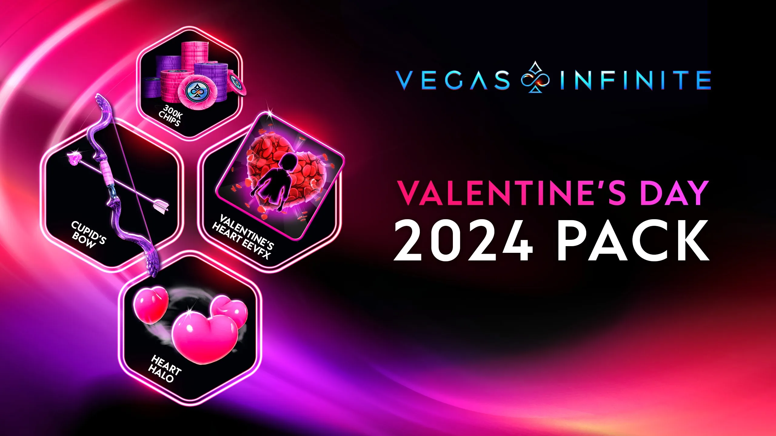 Fall head over heels with the Valentine’s Day 2024 Pack, available NOW, for 19.99! This special pack is bursting with romance, including 300k Chips to boost your bankroll, Cupid’s Bow n’ Arrow to unleash your love, the sparkling Heart Halo to radiate affection and an enchanting Valentine’s Heart Entrance/Exit effect! Don’t miss out on this limited-time offer to sprinkle some extra love into your gaming experience!