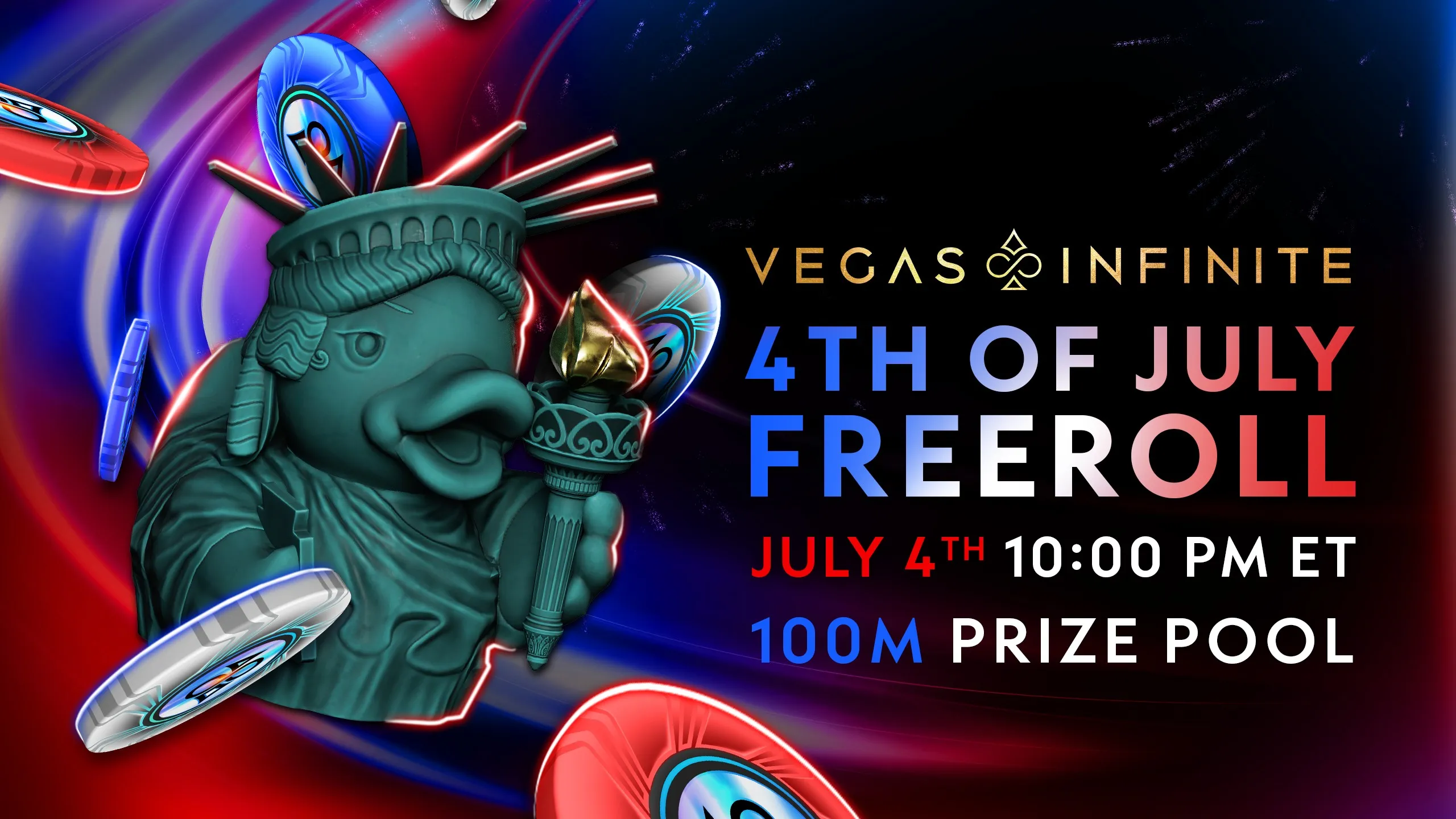 Celebrate Independence Day with a bang! Join us on July 4th at 10 PM ET for the 4th of July MTT Freeroll and compete for your share of a massive 100 Million chip prize pool! Don’t miss out on this star-spangled event - mark your calendars, and light up the tables with your poker skills!
