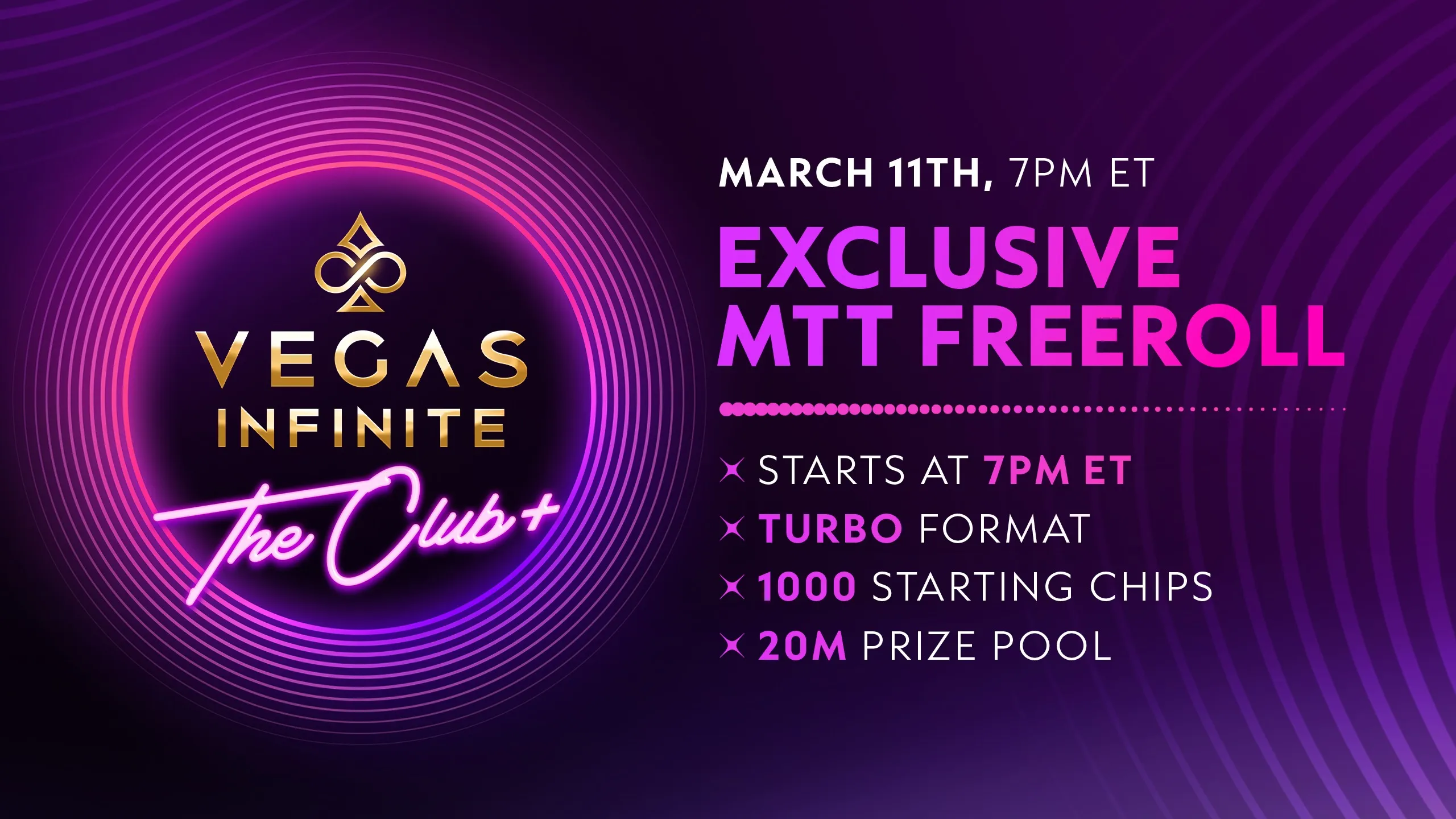 The next Club+-exclusive multi-table tournament in Vegas Infinite is right around the corner, and the pot is overflowing with a whopping 20,000,000 chip prize pool!