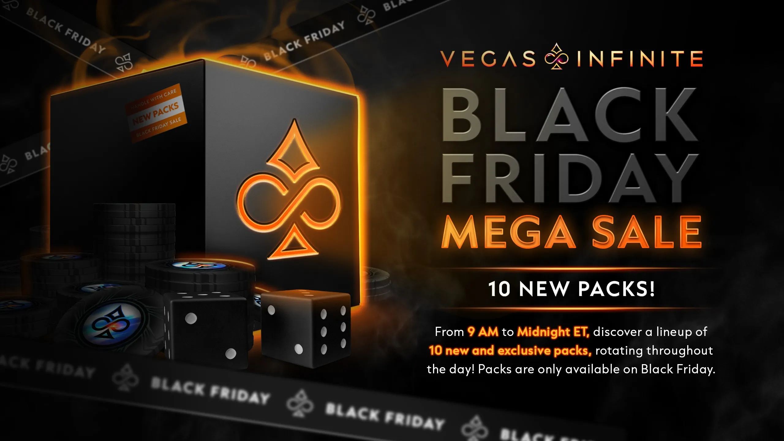 This year, we want to make Black Friday as grand as ever! For one day only, on Friday, November 29th, from 9 AM ET to Midnight ET, keep your eyes peeled in the Vegas Infinite store because, throughout the day, we will be rotating 10 new and exclusive packs that you’ll definitely want your hands on, including unbelievably low-priced chips, fan favorited items and vaulted goodies! These packs will be rotated randomly throughout the day and won’t be sold again once the clock hits midnight. Are you ready for this mega event?