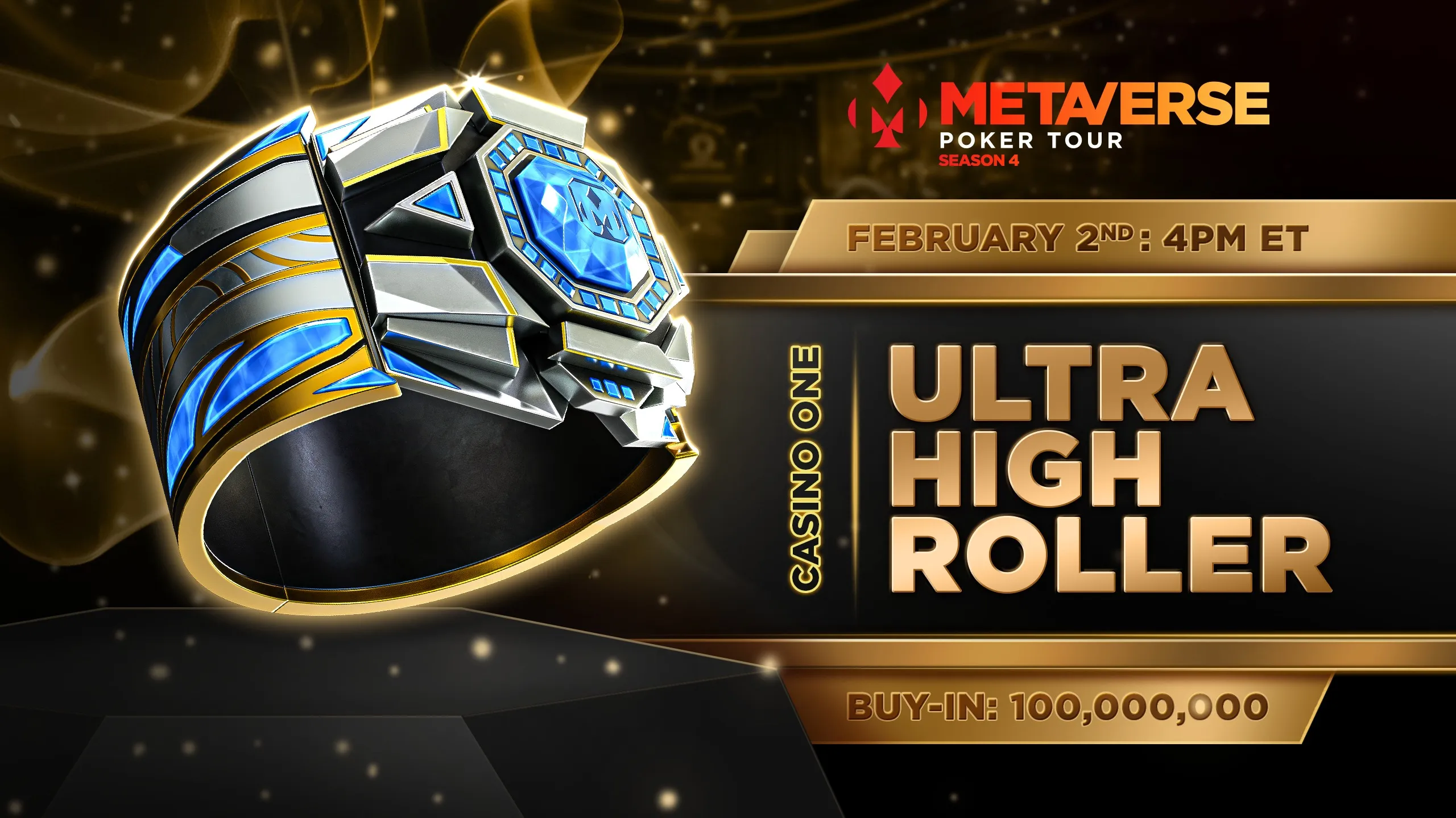 The Metaverse Poker Tour Season 4: Casino Ultra High Roller Event starts Sunday, February 2nd at 4PM ET. Compete for the chance to win huge chip prizes, and an exclusive MPT bracelet!