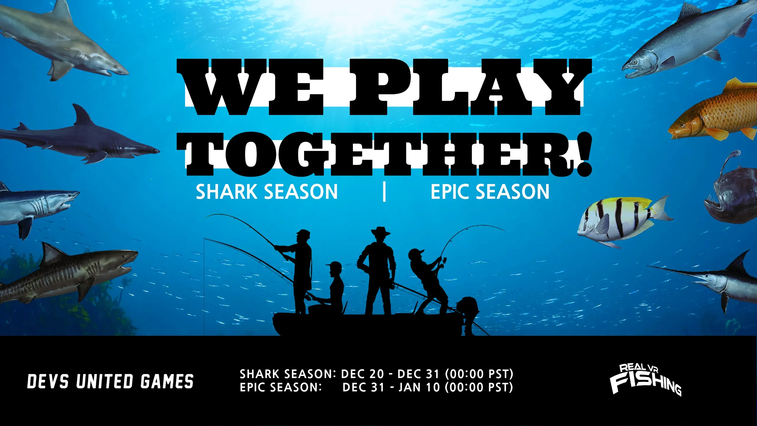 Hello Anglers! We have another surprise for you! We prepare 2 challenges you can enjoy! The first challenge name is called Shark Season, while the second challenge is Epic Season! Shark Season is a collaborative task in which every angler at Real VR Fishing has to catch a total of 50,000 sharks together to fill up a meter, which can be found inside your lodge. As this challenge is impossible to accomplish alone, everyone here needs to catch as many sharks as they can! During Shark Season, the chances of different shark species appearing will drastically increase! For your reference, please click HERE that contains the list of all of the sharks! This challenge will take place after an update on December 20 (00:00 PST) and conclude on December 31 (00:00 PST). Details regarding the Epic Season will be revealed right after the Shark Season ends. Stay tuned!