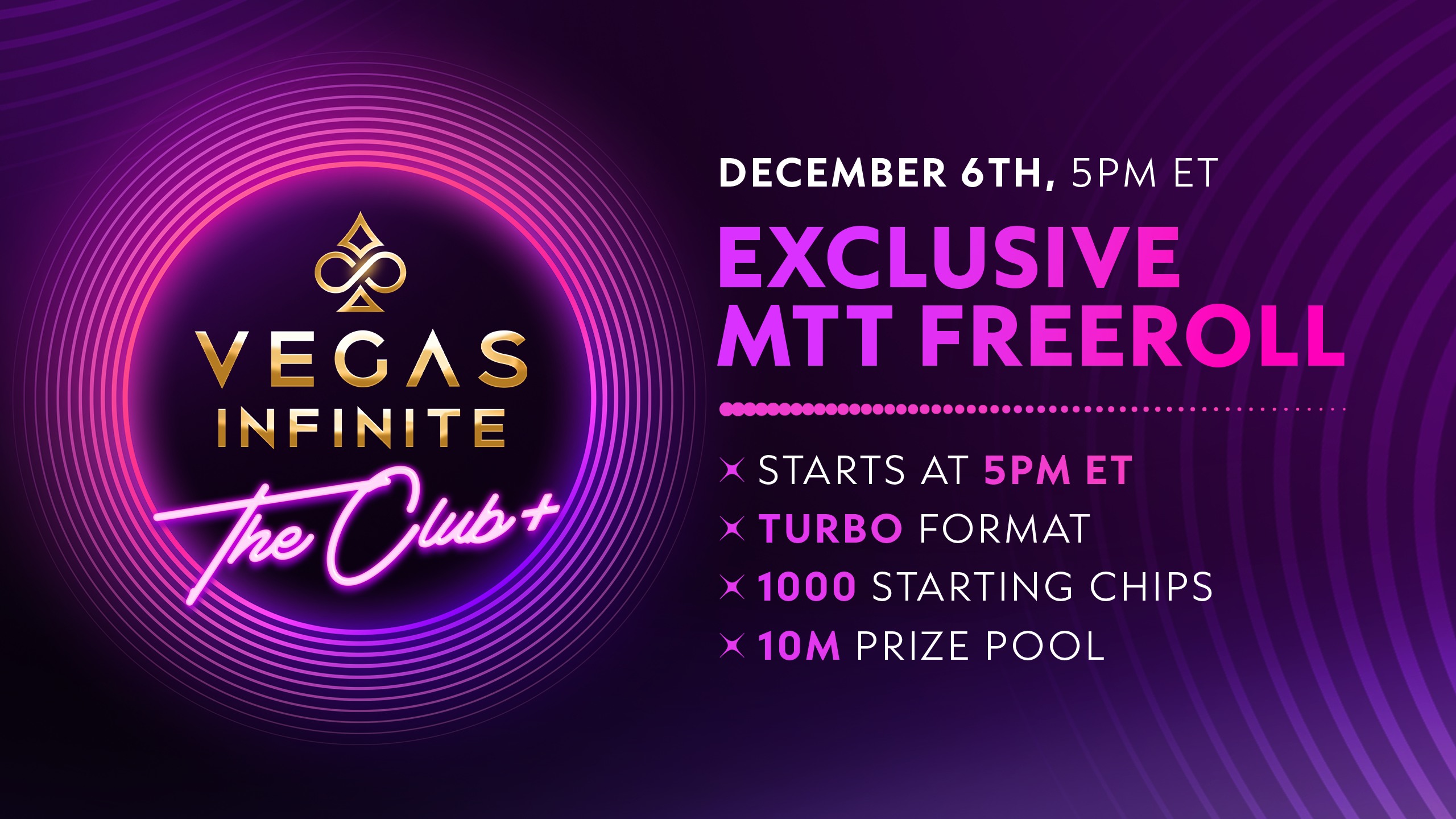 The next Club+-exclusive multi-table tournament in Vegas Infinite is right around the corner, and the pot is overflowing with a whopping 10,000,000 chip prize pool!