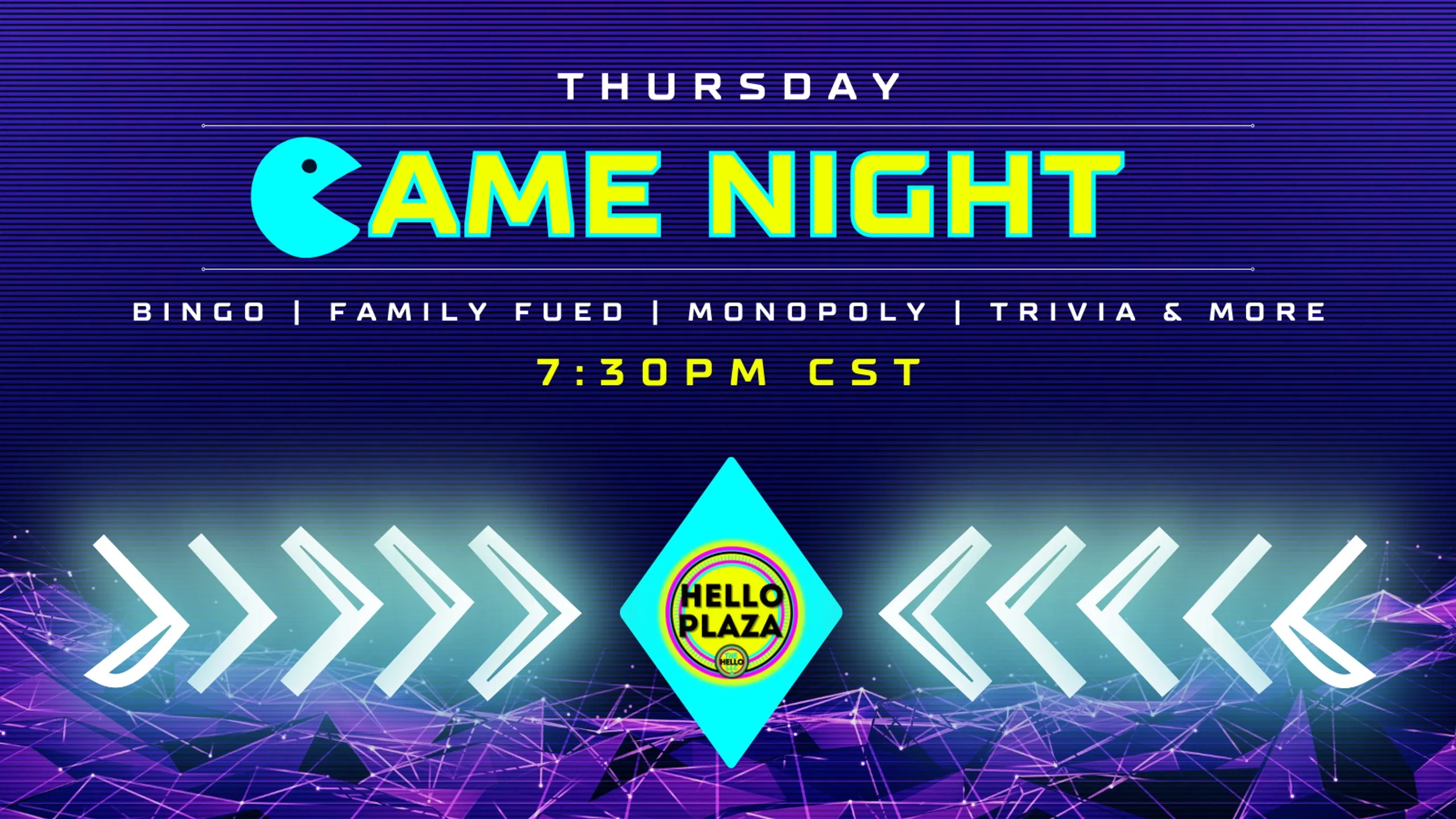 Looking for a fun and exciting way to unwind after a long week? Look no further than HELLO Game Night! Every Thursday at 7:30pm CST, join the HELLO team for a night of thrilling games and laughs. Whether you're a trivia whiz, a paintball pro, a dominos master, or just looking for a good old-fashioned game of bingo, board games, or Family Fued - we've got you covered. Our expert hosts will keep the energy high as you and your friends compete for bragging rights and prizes in a variety of exciting game formats. So grab your friends, and get ready to let loose and have a blast with HELLO Game Night!