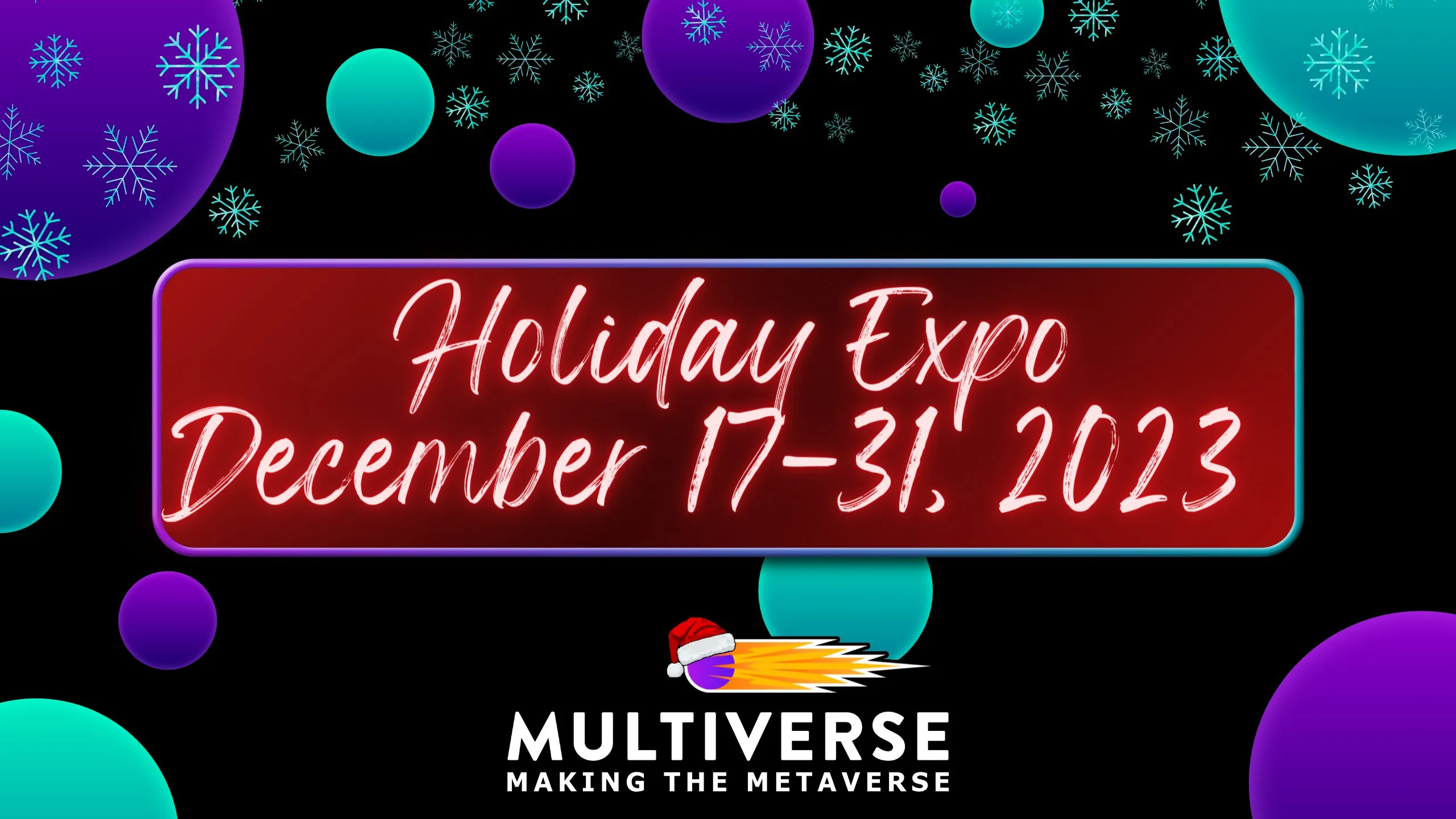 The 2023 Multiverse Holiday Expo! Multiverse welcomes you to the 2023 Holiday Business Expo! We've partnered with the Metaverse Chamber of Commerce to bring you 2 weeks of holiday cheer! Visit our storefronts, galleries and other fun holiday decorations. There is also a Christmas Competition where teams compete to win storefronts for each team member! Don't miss the holidays in Multiverse. December 17-31st.