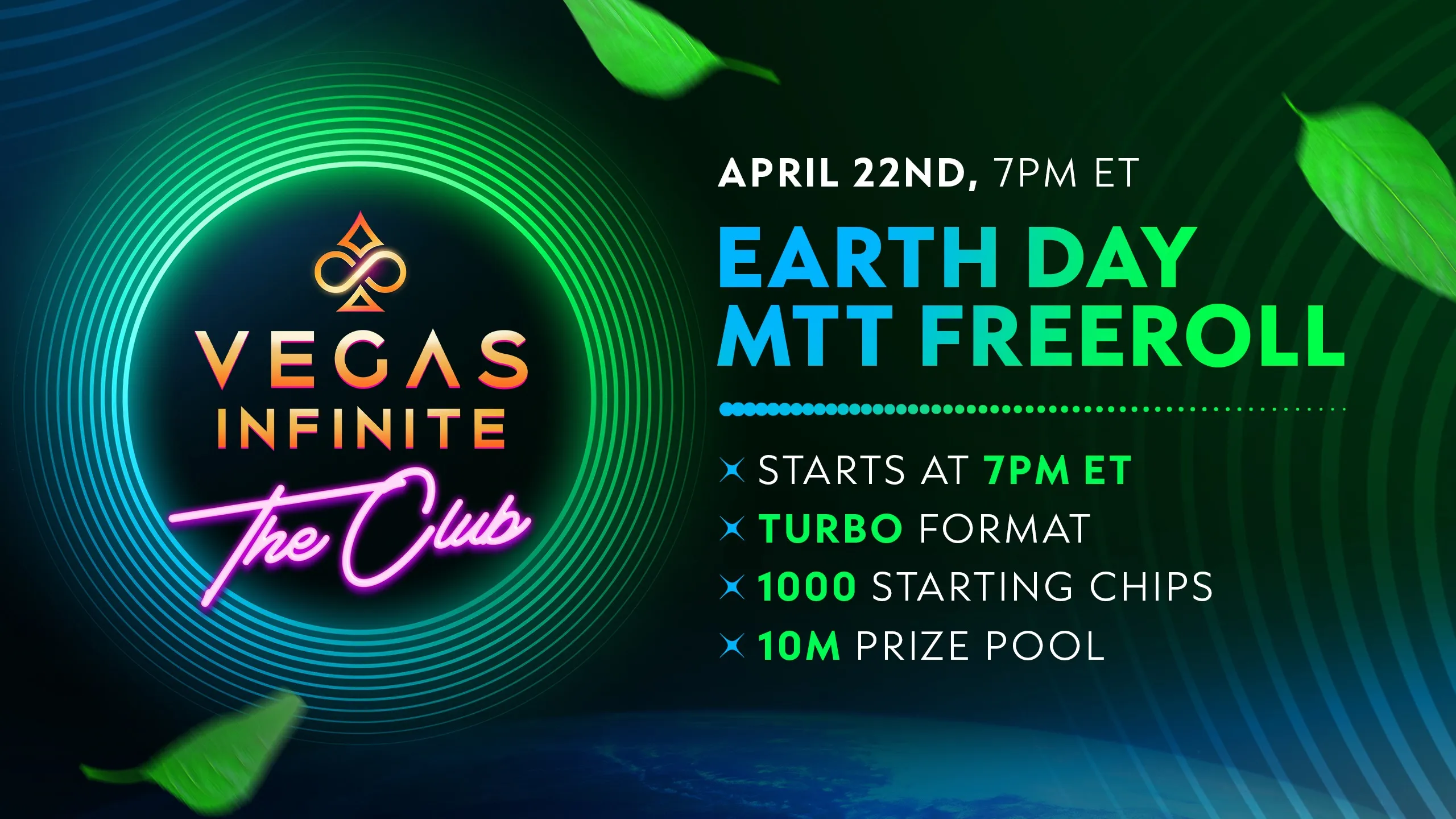 The Earth Day Club-exclusive multi-table tournament in Vegas Infinite is right around the corner, and the pot is overflowing with a whopping 10,000,000 chip prize pool!