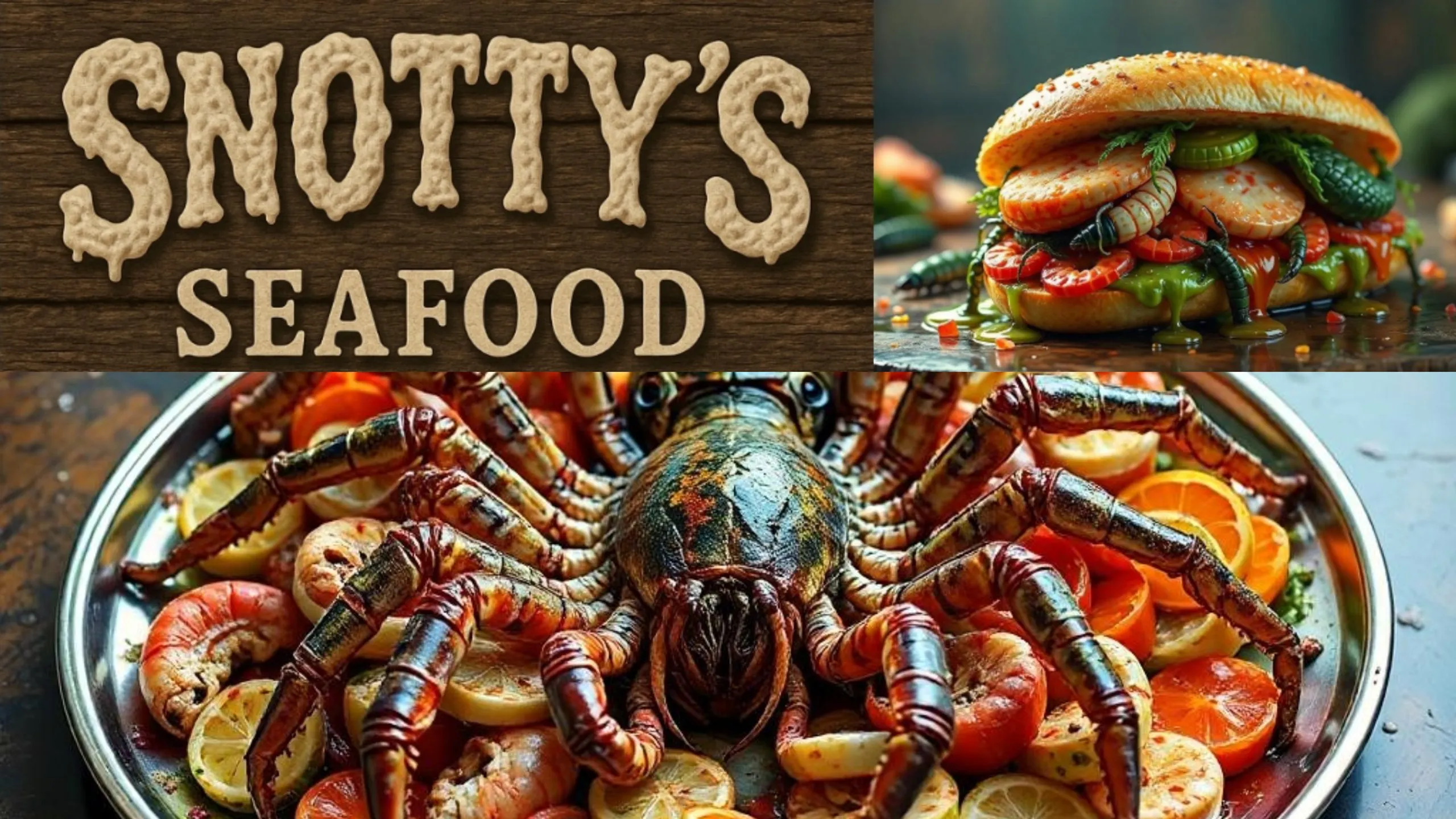 Snotty’s Seafood – Fear the Flavor Welcome to Snotty’s Seafood, the undisputed king of crustacean catastrophe. Nestled on the rickety edge of Utopia City’s Fisherman’s Wharf district, Snotty’s is not for the faint of stomach. Our kitchen serves seafood with character—and by character, we mean barnacles, flies, and a hint of mystery mold. From day-old oysters to shrimp that stare back at you, every plate is a daring dive into the depths of culinary chaos. Our motto? “So bad it’s unforgettable.” At Snotty’s, we don’t follow the rules of freshness. We marinate in fermentation, season with suspicion, and garnish with whatever the tide rolls in. House Favorites Include: Spite-Fried Clams™ Moldy Mussel Medley Sludge-Dipped Scallops “Guess-the-Smell” Seafood Platter Dine indoors or brave our open-air rotisserie by the docks—just watch your step, the floorboards bite back. Now open in Utopia City. Come hungry, leave horrified.