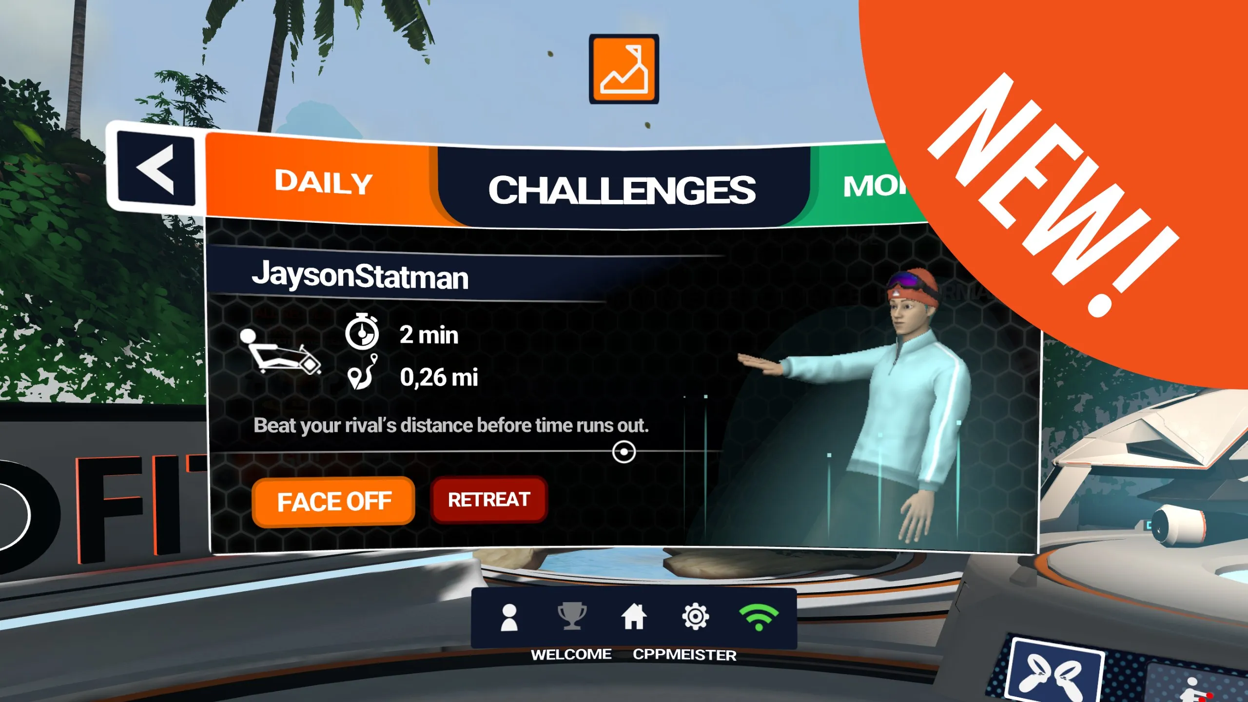 The Great HOLOFIT Face-Off introduces a new way to compete in Performance Mode. You can now use Performance Mode inside Challenges, where you’ll face off against distance records set by other Holofitters at a similar level, or set your own baseline first if you don’t have a record yet. Head to the Daily challenge and take on your first opponent!