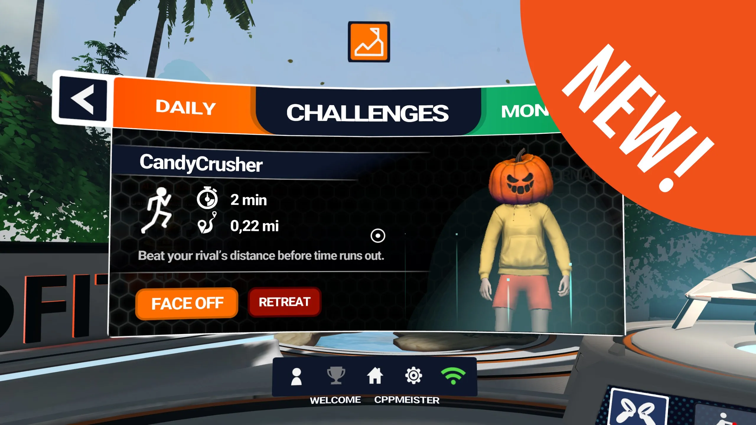 The Great HOLOFIT Face-Off introduces a new way to compete in Performance Mode. You can now use Performance Mode inside Challenges, where you’ll face off against distance records set by other Holofitters at a similar level, or set your own baseline first if you don’t have a record yet. Head to the Daily challenge and take on your first opponent!