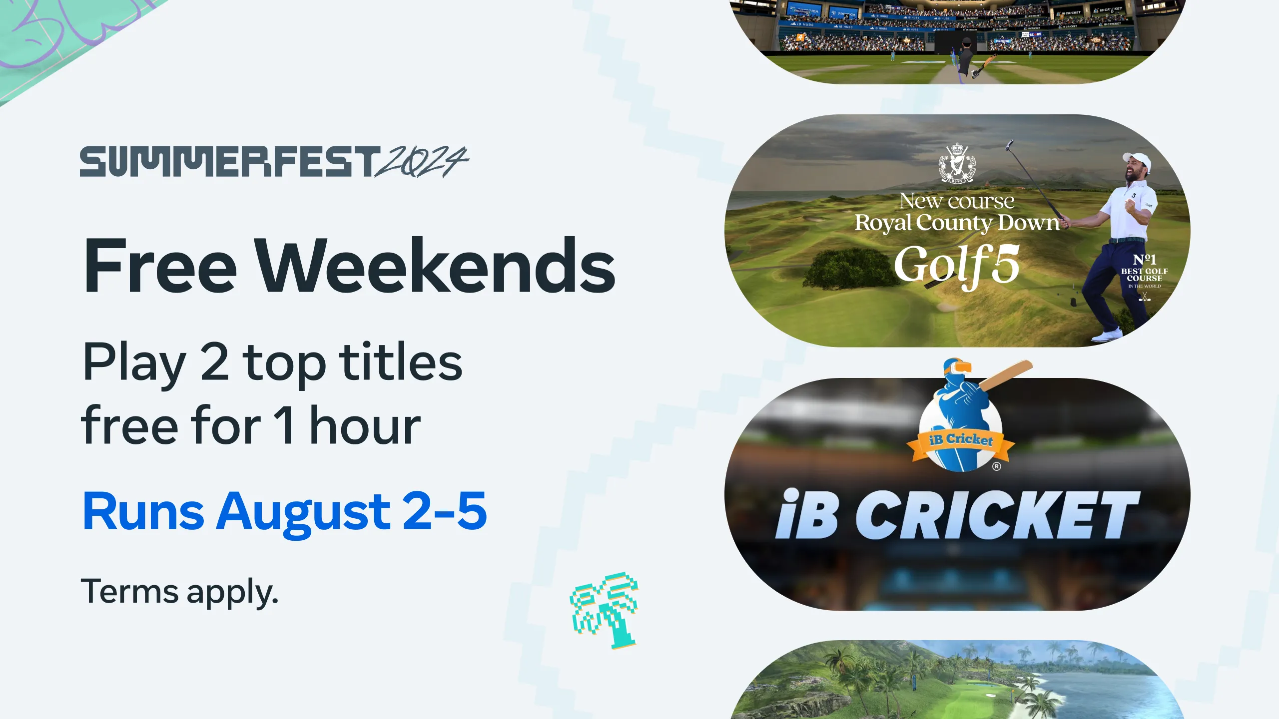 If you’ve been waiting to try out Golf 5, now’s your chance. This weekend only, play 1 hour for free on Meta Quest between Friday, 8/2 @ 3:00pm and Monday, 8/5 @ 1:00 am (Local Time).